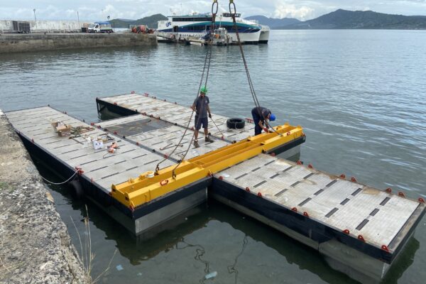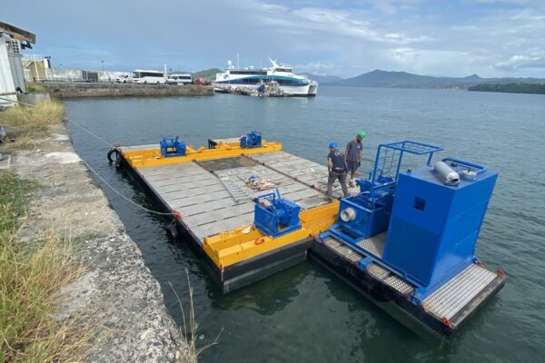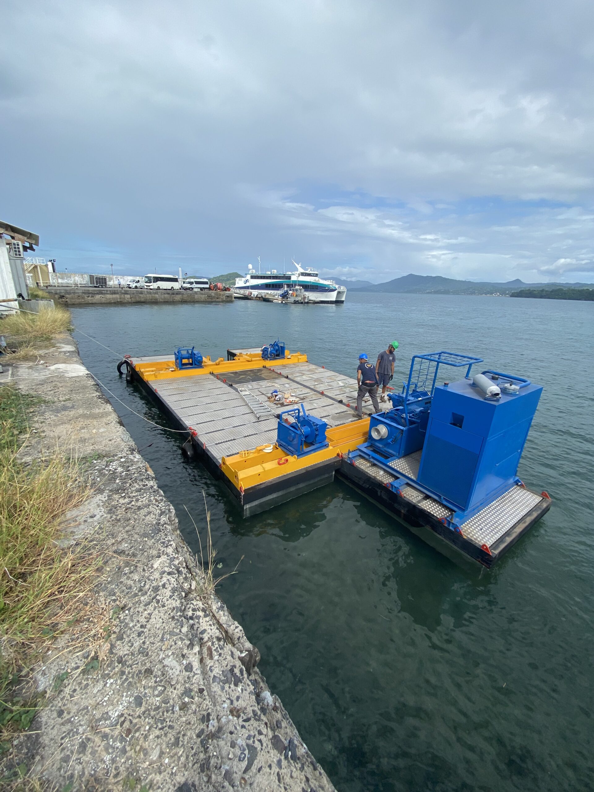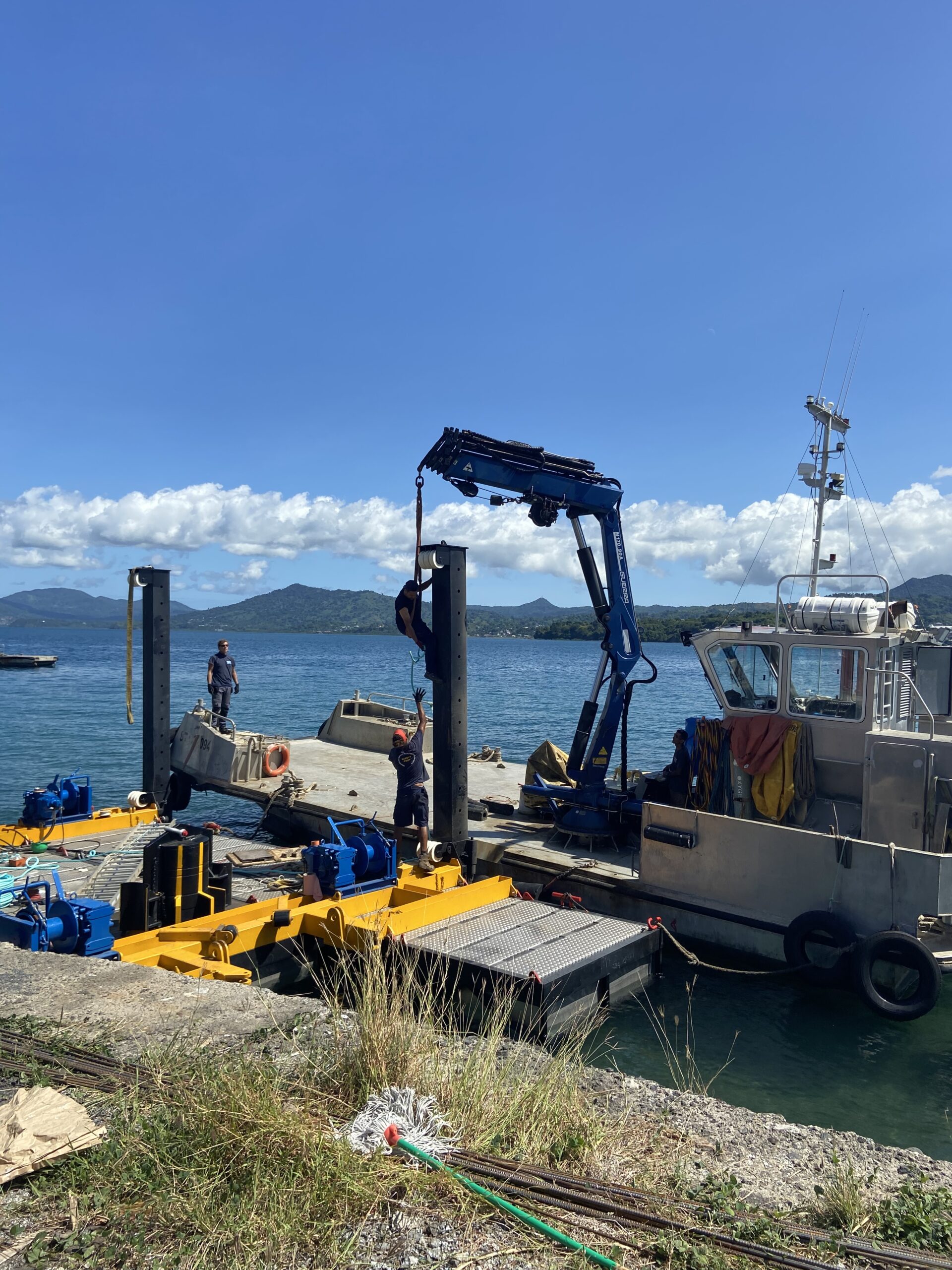 Ante el encargo de construir varios embarcaderos con pantalanes flotantes de hormigón en Mayotte, MSI se enfrentó a la ausencia de maquinaria pesada de pilotaje en la zona. Para solventarlo, desarrolló una máquina de pilotaje portátil y flotante, capaz de operar en muy poco calado y fácilmente transportable por remolque o contenedor.