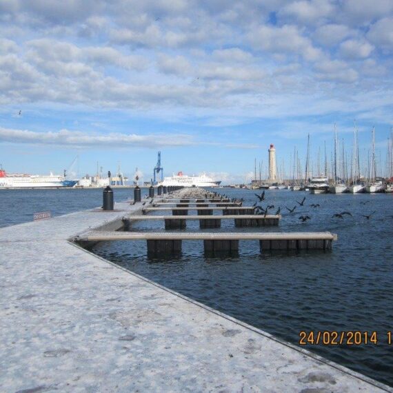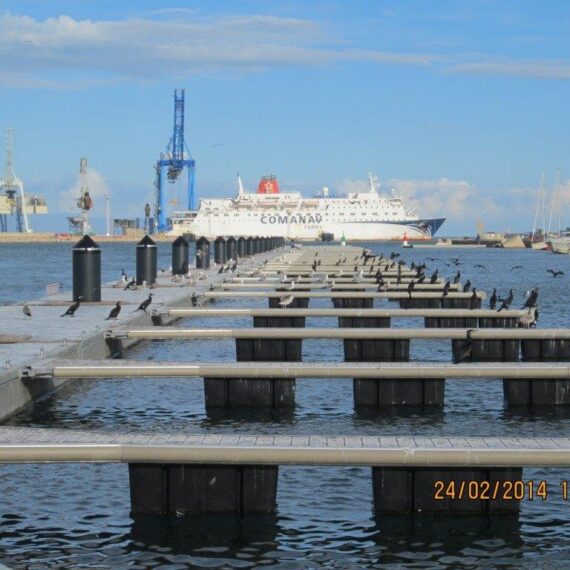 MSI ejecutó una de las mayores instalaciones de rompeolas flotantes de Europa, con cerca de dos kilómetros de longitud. El proyecto combina una primera sección formada por módulos SF1230 dispuestos en paralelo, alcanzando 6 metros de ancho y destinados al amarre de embarcaciones, y una segunda sección compuesta por un rompeolas flotante T400 de 4 metros, guiado mediante pilotes internos y habilitado también para el amarre mediante fingers en la zona protegida.