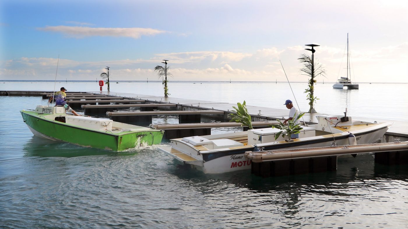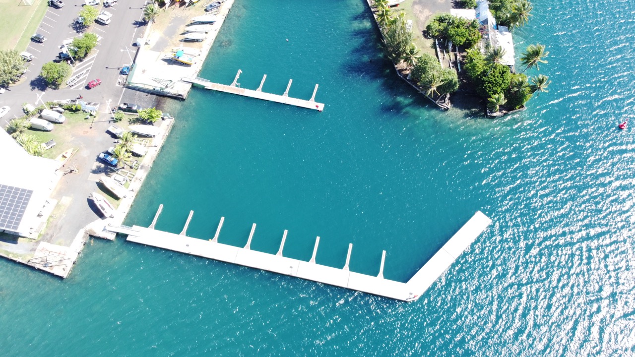 Las dársenas pesqueras de Arue y Faa requerían mejorar la seguridad y estabilidad de los amarres frente a la acción del viento y el oleaje. MSI instaló pantalanes flotantes de hormigón de 3 y 4 metros de ancho, dimensionados según las condiciones de cada zona y fondeados mediante cadenas, proporcionando una protección eficaz y permitiendo la instalación de estructuras interiores más ligeras. A pesar de la compleja logística de transporte desde Europa hasta la Polinesia Francesa, el proyecto se ejecutó con éxito, dotando a ambas dársenas de una solución segura, duradera y fiable.