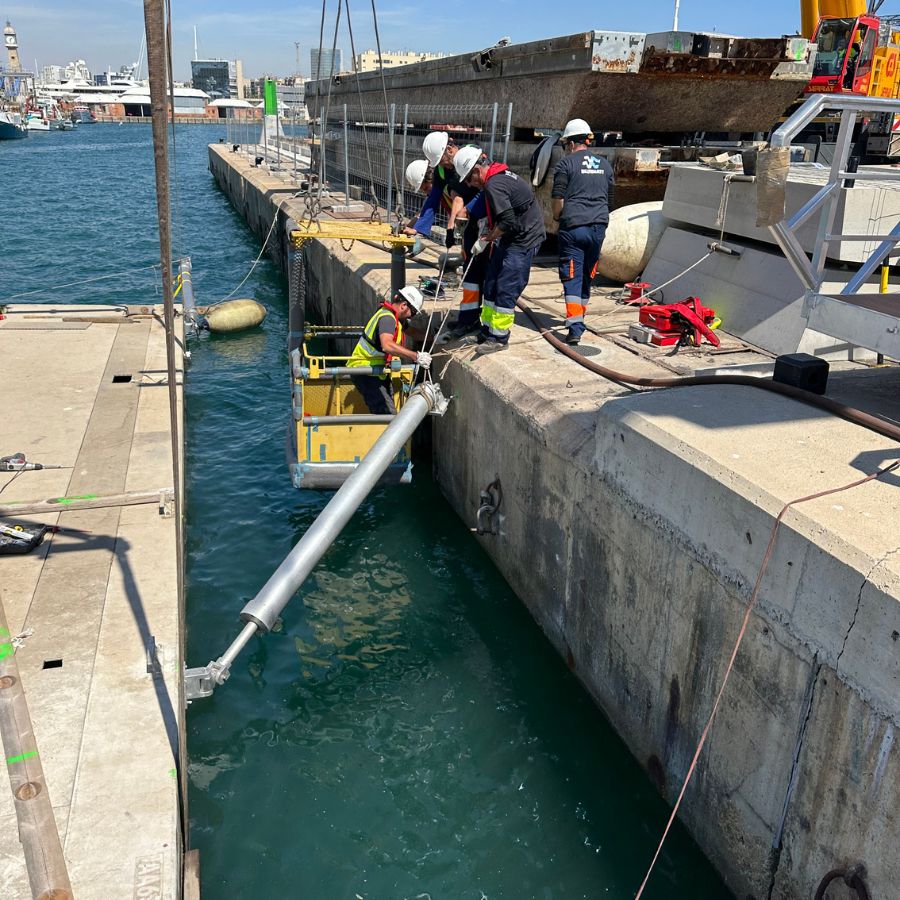 Las bielas amortiguadoras son elementos de conexión diseñados para fijar y guiar estructuras flotantes en paralelo a infraestructuras fijas como muelles, diques o escolleras. Su función principal es absorber y controlar los esfuerzos generados por el oleaje y por las maniobras de amarre de las embarcaciones, reduciendo la transmisión directa de cargas a la estructura flotante y a los puntos de anclaje.