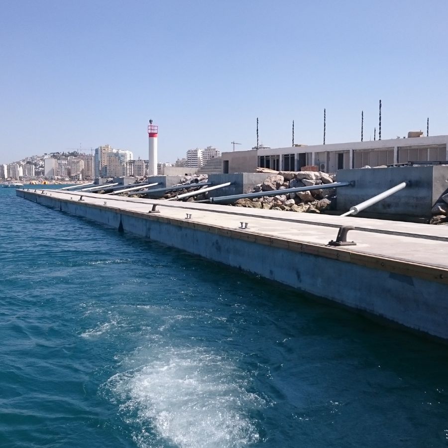 El sistema permite mantener el pantalán o plataforma flotante alineado con la estructura fija, garantizando estabilidad operativa y un comportamiento controlado frente a solicitaciones dinámicas. Al mismo tiempo, las bielas permiten el movimiento vertical necesario para adaptarse a las variaciones del nivel del agua, asegurando el correcto funcionamiento de la instalación en condiciones de marea o fluctuaciones hidráulicas.